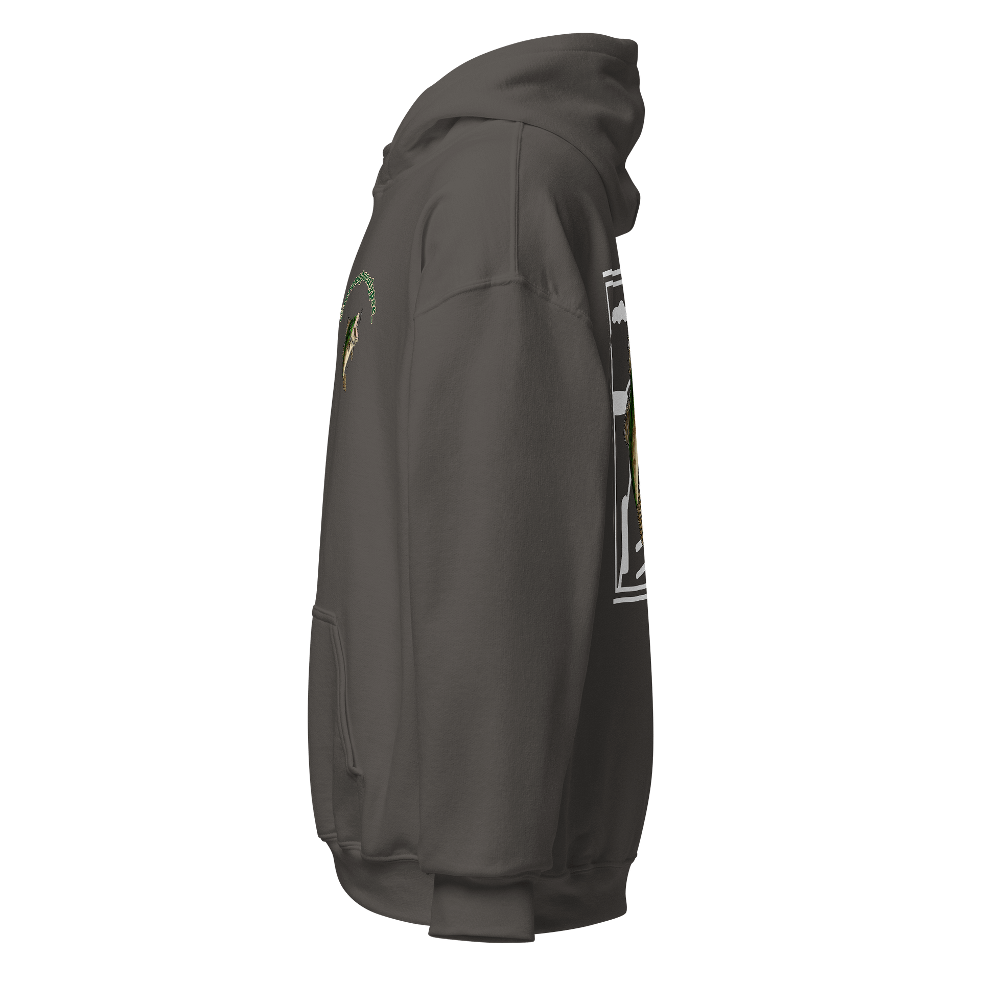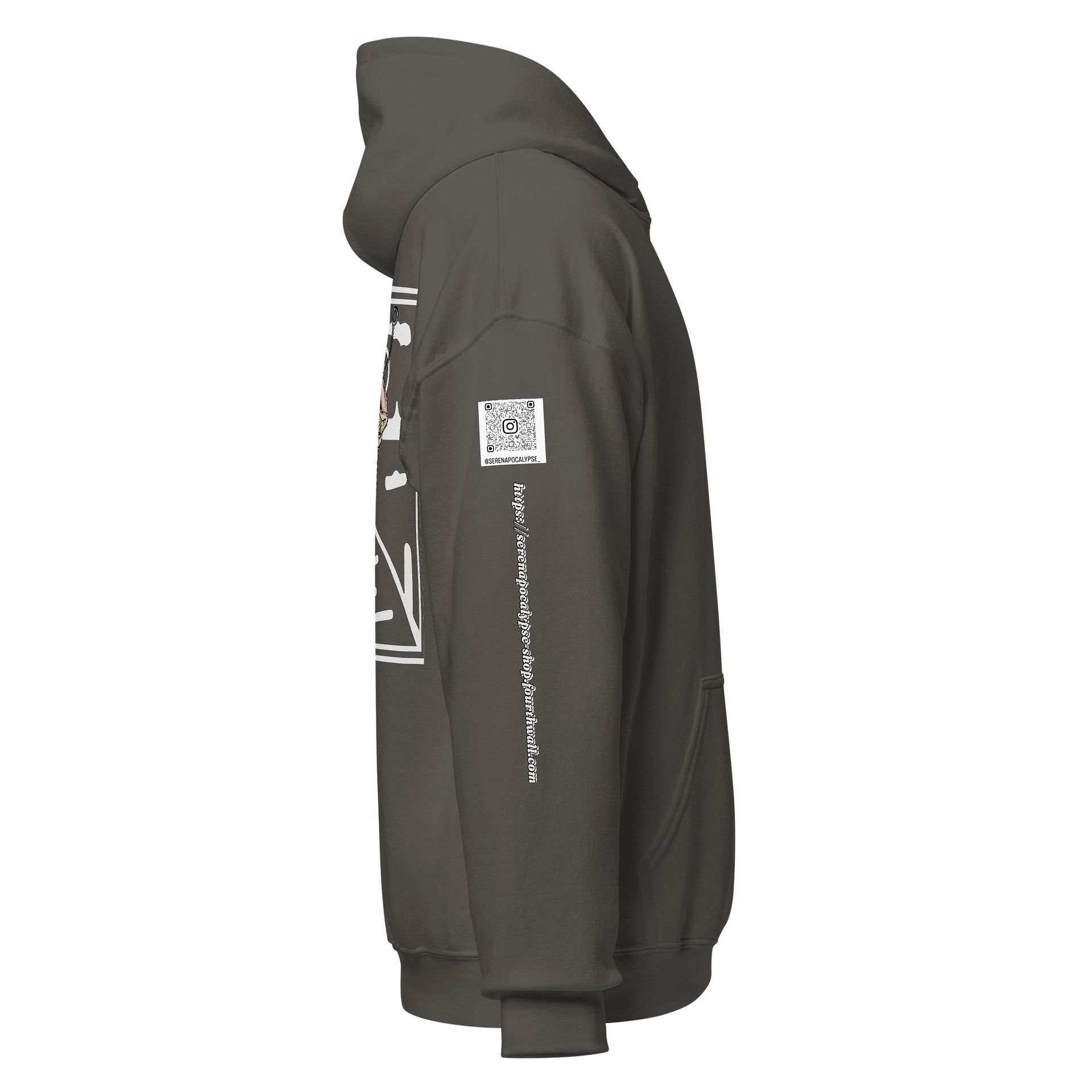 This hoodie design features a more safe-for-work design, as well as a front, back AND a (right) sleeve graphic. This design features fabric colors primarily inspired by common outdoor apparel.